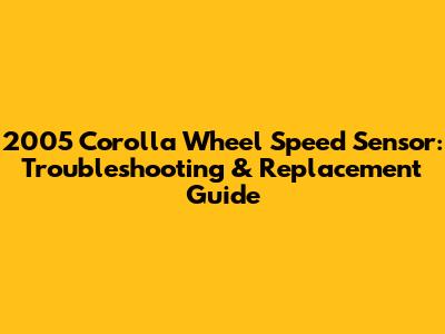 Troubleshooting Your 2005 Corolla Wheel Speed Sensor