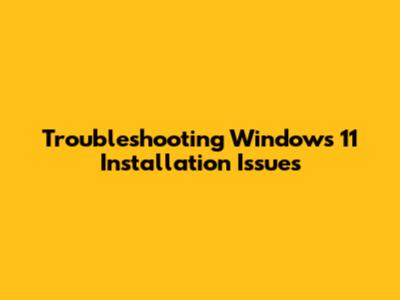 Troubleshooting Windows 11 Installation Issues