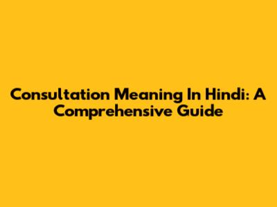 Consultation Meaning In Hindi: A Comprehensive Guide