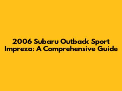 2006 Subaru Outback Sport Impreza: A Comprehensive Guide