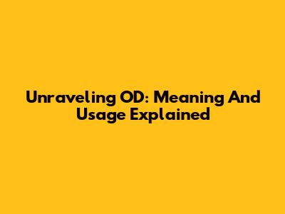 Unraveling OD: Meaning And Usage Explained