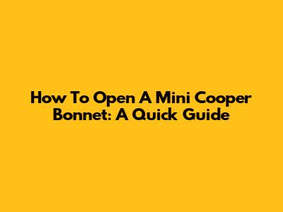 How To Open A Mini Cooper Bonnet: A Quick Guide