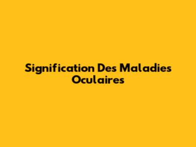 Signification Des Maladies Oculaires
