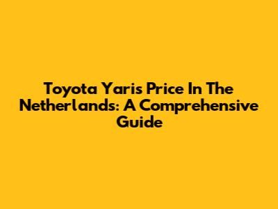 Toyota Yaris Price In The Netherlands: A Comprehensive Guide