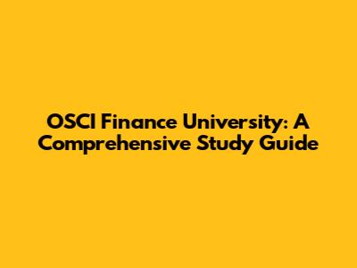 OSCI Finance University: A Comprehensive Study Guide