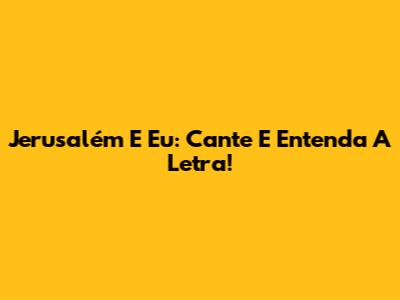 Jerusalém E Eu: Cante E Entenda A Letra!