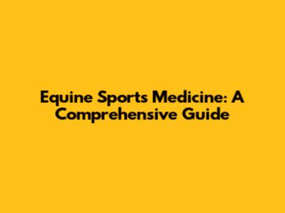 Equine Sports Medicine: A Comprehensive Guide