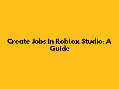 Create Jobs In Roblox Studio: A Guide