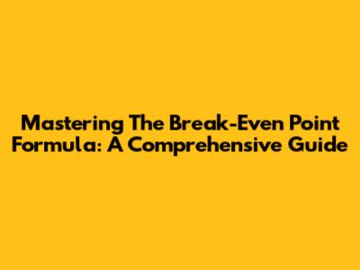 Mastering The Break-Even Point Formula: A Comprehensive Guide