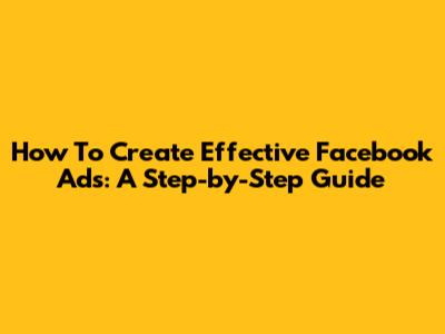 How To Create Effective Facebook Ads: A Step-by-Step Guide