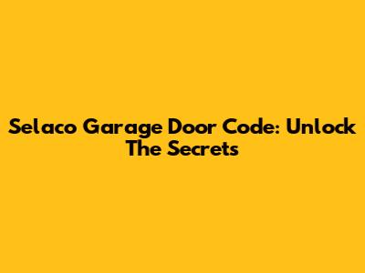 Selaco Garage Door Code: Unlock The Secrets
