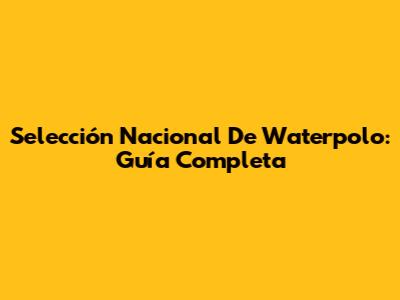Selección Nacional De Waterpolo: Guía Completa