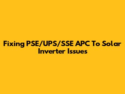 Fixing PSE/UPS/SSE APC To Solar Inverter Issues