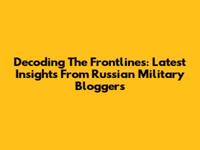 Decoding The Frontlines: Latest Insights From Russian Military Bloggers