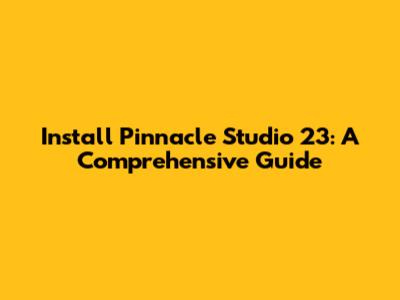 Install Pinnacle Studio 23: A Comprehensive Guide