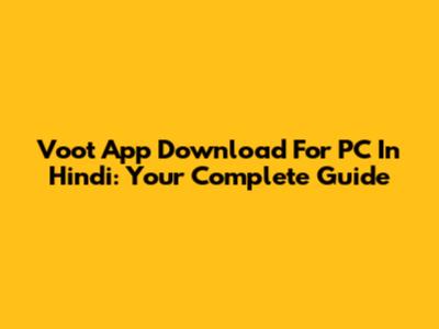 Voot App Download For PC In Hindi: Your Complete Guide