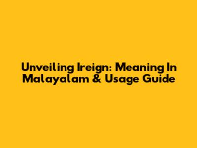 Unveiling 'Ireign': Meaning In Malayalam & Usage Guide