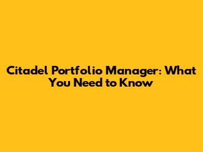 Understanding the Role of a Citadel Portfolio Manager