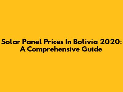 Solar Panel Prices In Bolivia 2020: A Comprehensive Guide