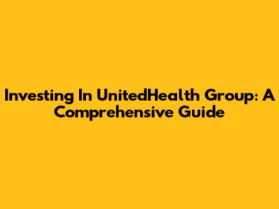 Investing In UnitedHealth Group: A Comprehensive Guide