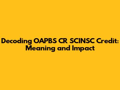 The Significance of OAPBS CR SCINSC Credit