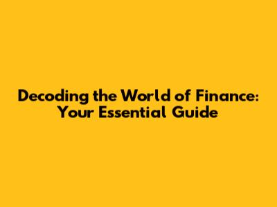 Hey finance enthusiasts! Let's dive headfirst into the fascinating realm of finance. It's a vast landscape, no doubt, but hey, don't sweat it! We'll break down the essentials, making it easier than ever to understand. Whether you're a seasoned investor or just starting to manage your own money, this guide is packed with the information you need to navigate the financial world confidently. So, grab a cup of coffee, and let's get started. Finance, in its simplest form, is about managing money. This encompasses everything from your personal finances to the complex financial systems that run the global economy. Understanding finance means understanding how money is earned, saved, invested, and spent. It's about making smart decisions that can significantly impact your financial well-being and future. We will explore key areas such as investment strategies, budgeting tips, and tax planning to provide you with a comprehensive understanding.