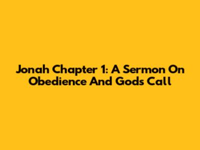 Jonah Chapter 1: A Sermon On Obedience And God's Call