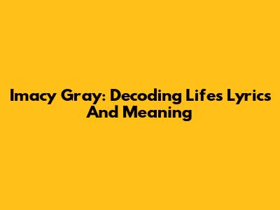 Imacy Gray: Decoding Life's Lyrics And Meaning