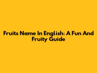 Fruits Name In English: A Fun And Fruity Guide