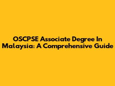 OSCPSE Associate Degree In Malaysia: A Comprehensive Guide