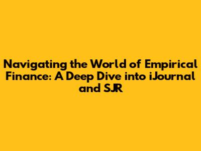 Hey finance enthusiasts! Ever found yourself knee-deep in economic data, struggling to make sense of it all? Welcome to the fascinating, and sometimes perplexing, world of empirical finance. Today, we're going to break down a key player in this field: the iJournal of Empirical Finance, and shed some light on what SJR means and why it's a big deal. So, grab your coffee, settle in, and let's get started. We're going to unravel the complexities and hopefully make it a little less daunting.