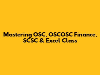 Mastering OSC, OSCOSC Finance, SCSC & Excel Class
