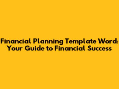 Are you looking to get your finances in order but don't know where to start? Financial planning can seem daunting, but with the right tools, it becomes manageable. A financial planning template in Word format is an excellent resource to help you organize your financial life. Let's dive into why these templates are so useful and how you can make the most of them.