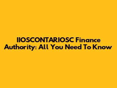 IIOSCONTARIOSC Finance Authority: All You Need To Know