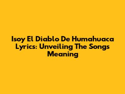 Isoy El Diablo De Humahuaca Lyrics: Unveiling The Song's Meaning