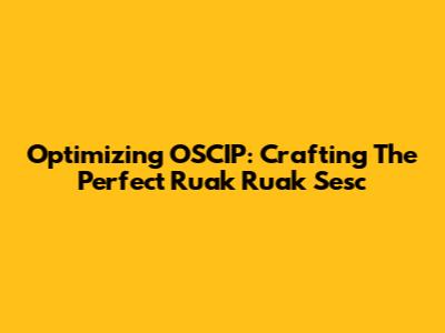 Optimizing OSCIP: Crafting The Perfect Ruak Ruak Sesc