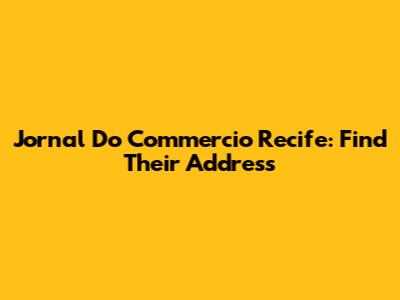 Jornal Do Commercio Recife: Find Their Address
