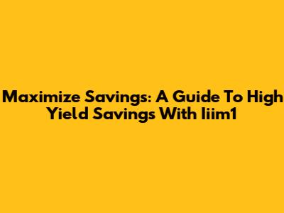 Maximize Savings: A Guide To High Yield Savings With Iiim1