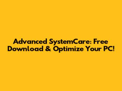 Advanced SystemCare: Free Download & Optimize Your PC!