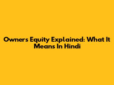 Owner's Equity Explained: What It Means In Hindi