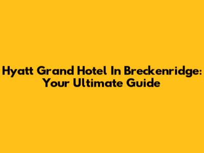 Hyatt Grand Hotel In Breckenridge: Your Ultimate Guide