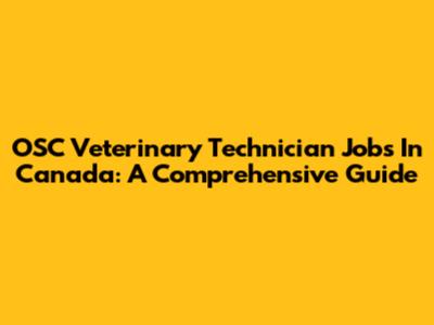 OSC Veterinary Technician Jobs In Canada: A Comprehensive Guide