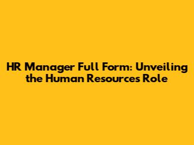HR Manager Full Form: Summary