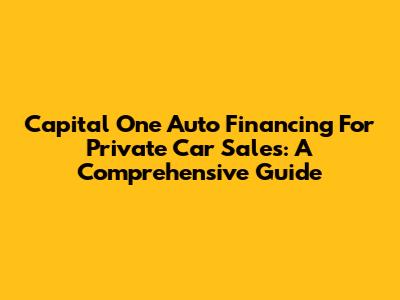 Capital One Auto Financing For Private Car Sales: A Comprehensive Guide