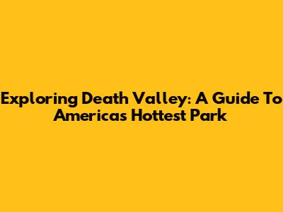 Exploring Death Valley: A Guide To America's Hottest Park