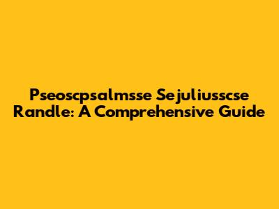 Pseoscpsalmsse Sejuliusscse Randle: A Comprehensive Guide