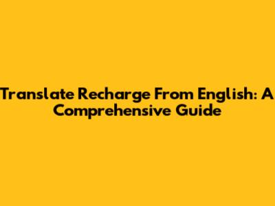 Translate "Recharge" From English: A Comprehensive Guide