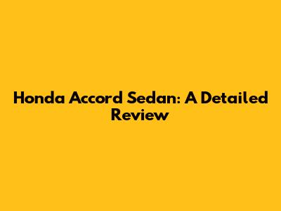 Honda Accord Sedan: A Detailed Review