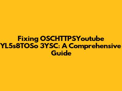 Fixing OSCHTTPSYoutube YL5s8TOSo 3YSC: A Comprehensive Guide