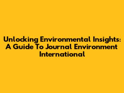 Unlocking Environmental Insights: A Guide To Journal Environment International
